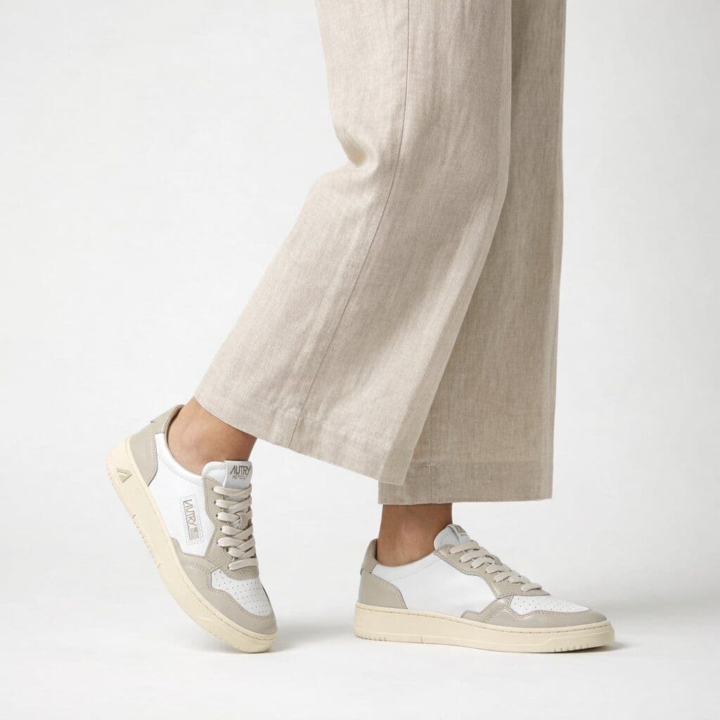 Le AUTRY Medalist Low Pelle Bianca e Tidal Foam sono sneakers Autry iconiche perfette per chi cerca scarpe streetwear dal design vintage ispirato al tennis anni ’80. Questo modello del brand americano unisce estetica rétro e comfort moderno, diventando una delle sneakers lifestyle più apprezzate nella moda urbana. Rispetto ai modelli tennis classici, le Autry Medalist Low originali offrono materiali premium e una silhouette più contemporanea pensata per l’uso quotidiano.