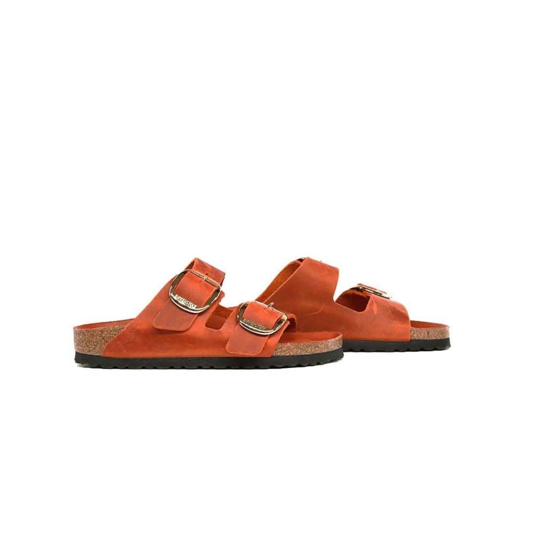 Le Birkenstock Arizona Big Buckle sono l’evoluzione di un vero classico che entusiasma il mondo della moda con il suo design essenziale. Presenta due fibbie ad ardiglione grandi ed eleganti, un bel particolare che spicca su questi sandali molto sobri. I plantari anatomici le rendono una scarpa cult dal confort unico. La tomaia è realizzata in pelle marrone particolarmente spessa e oliata, lavorata a cuciture aperte.