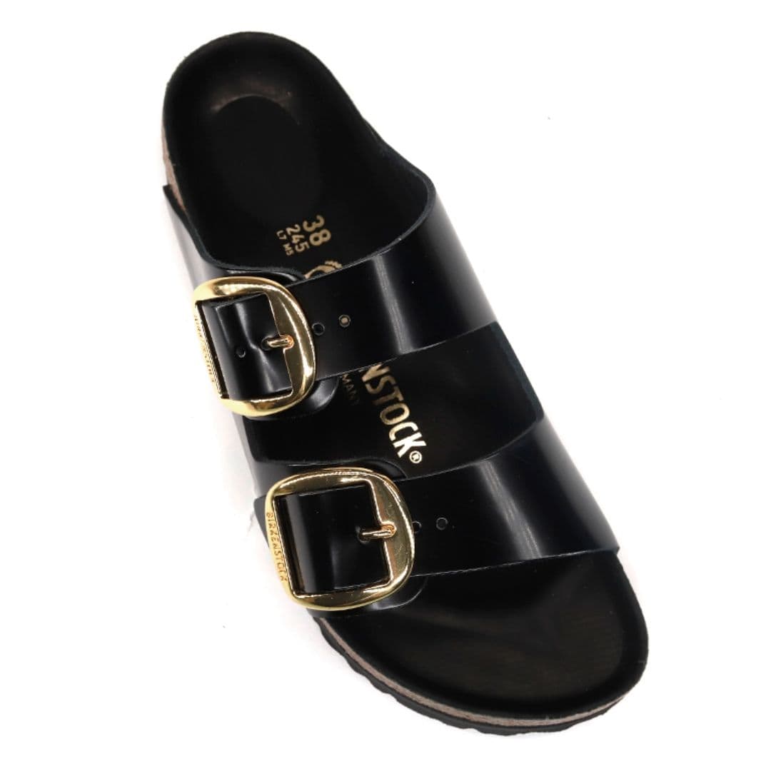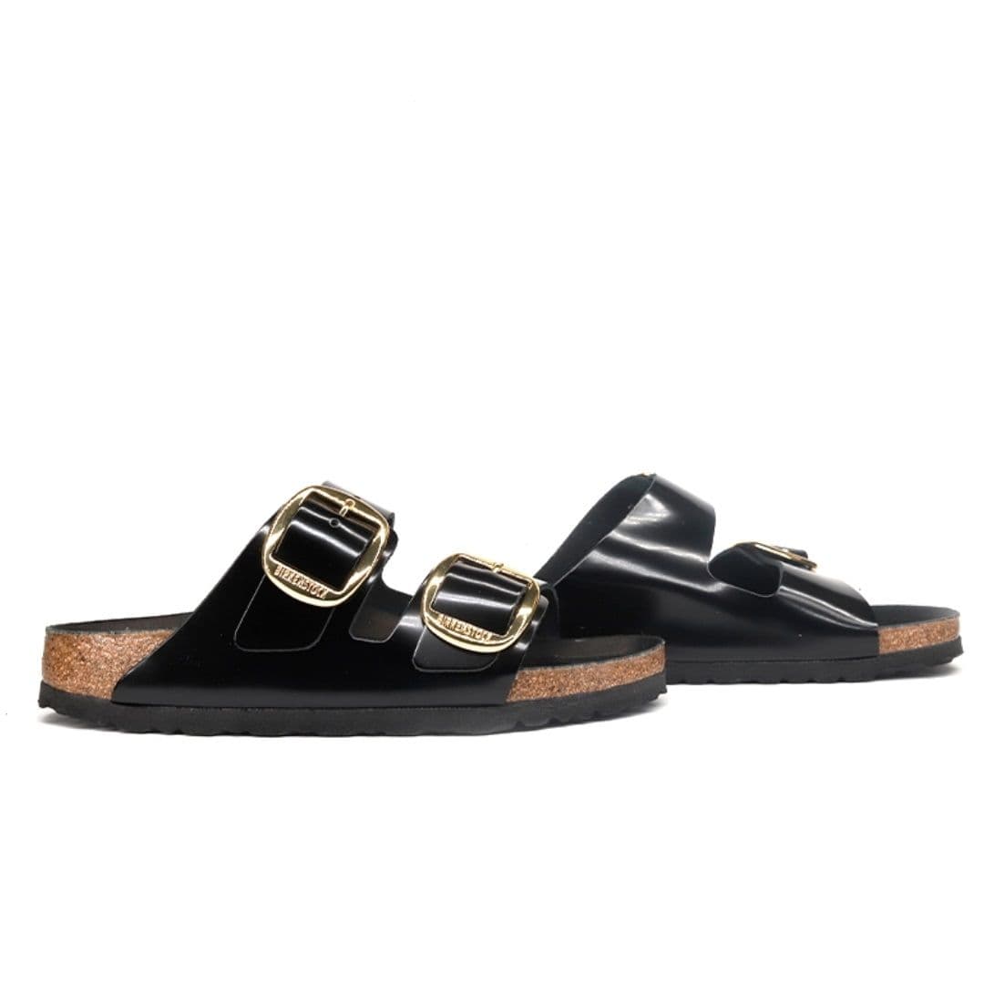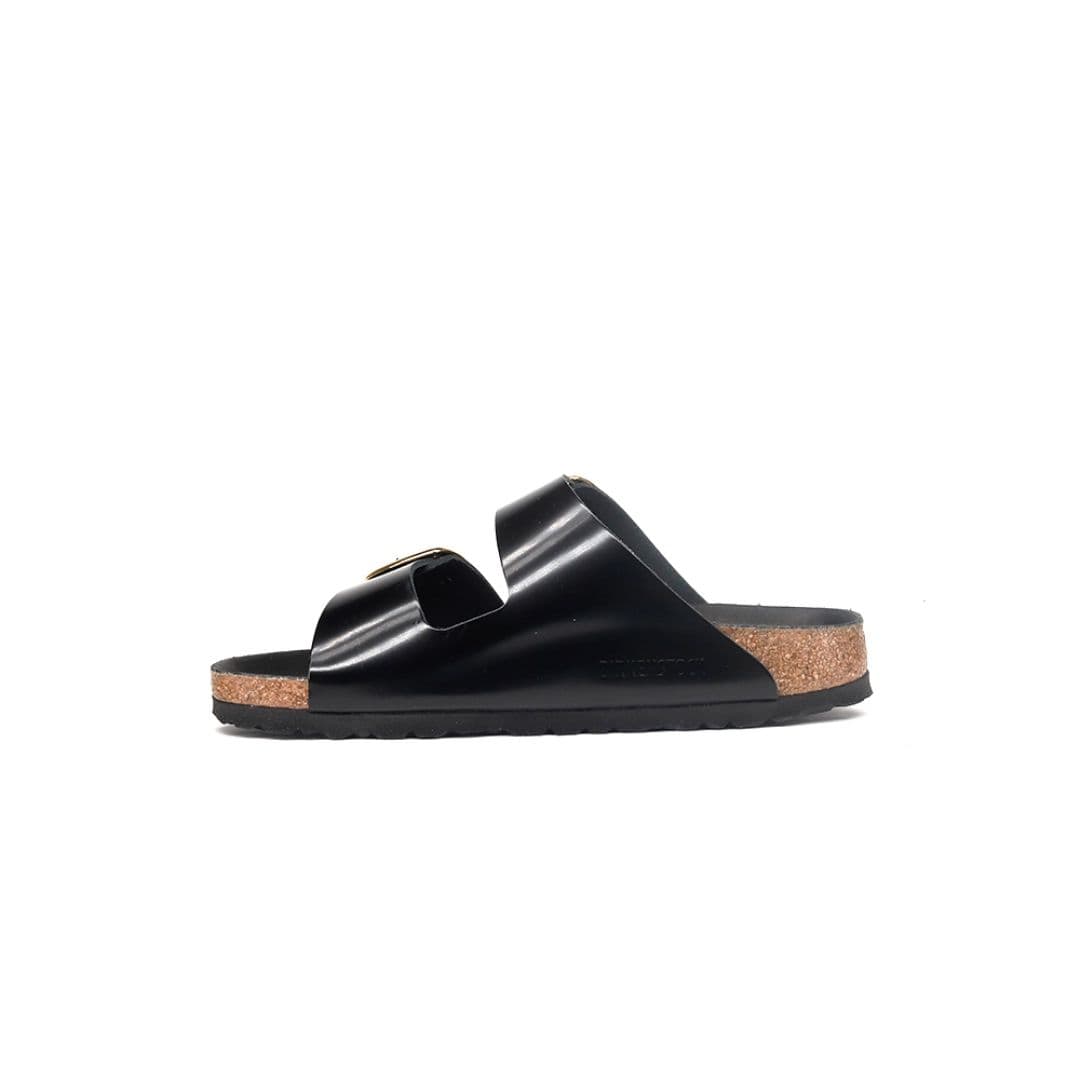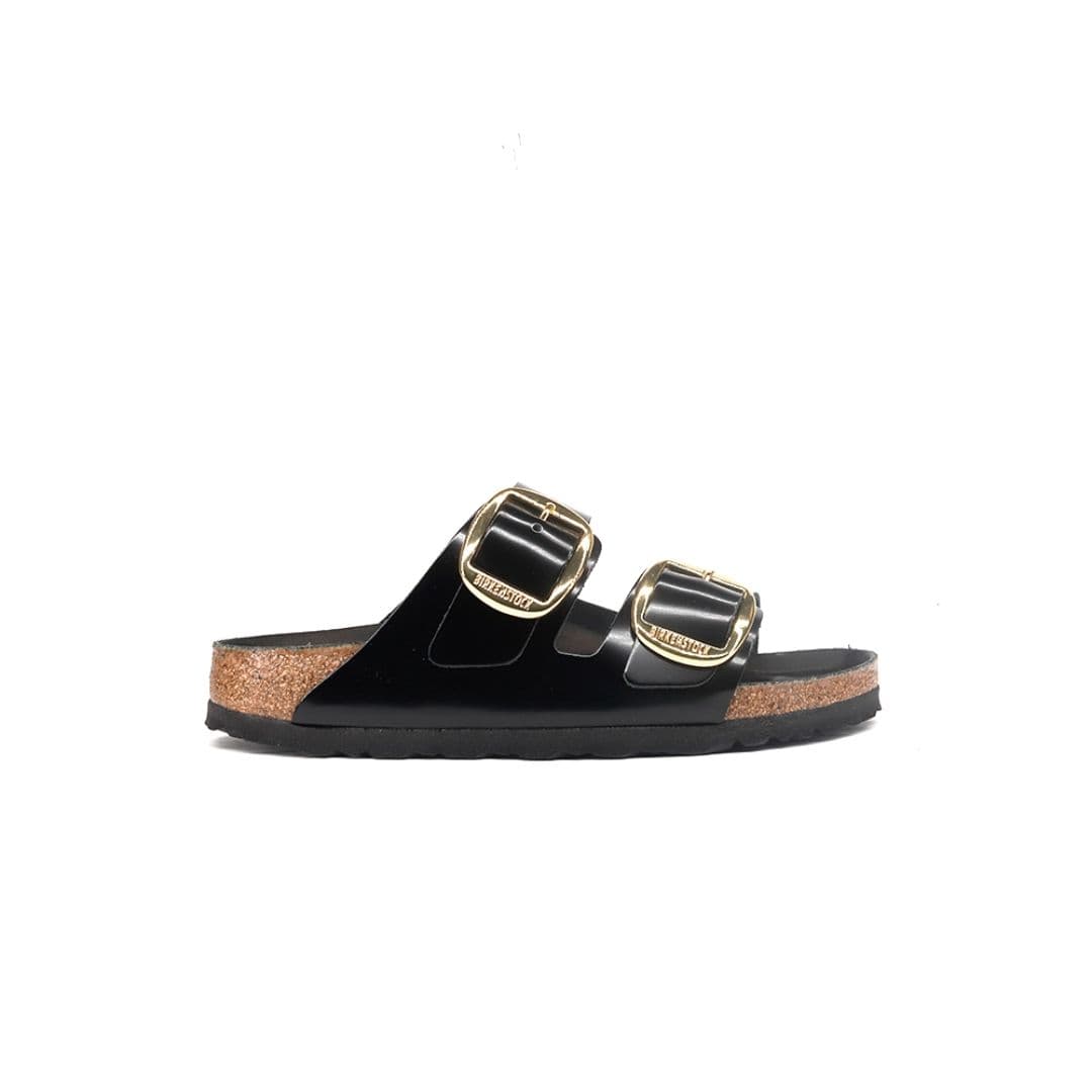 Le Birkenstock Arizona Big Buckle sono l’evoluzione di un vero classico che entusiasma il mondo della moda con il suo design essenziale. Presenta due fibbie ad ardiglione grandi ed eleganti, un bel particolare che spicca su questi sandali molto sobri. Il sottopiede del plantare semi-exquisit è rivestito in morbida pelle liscia in colore coordinato alla scarpa. La tomaia è composta da pelle nera lucida, lavorata a cuciture aperte.