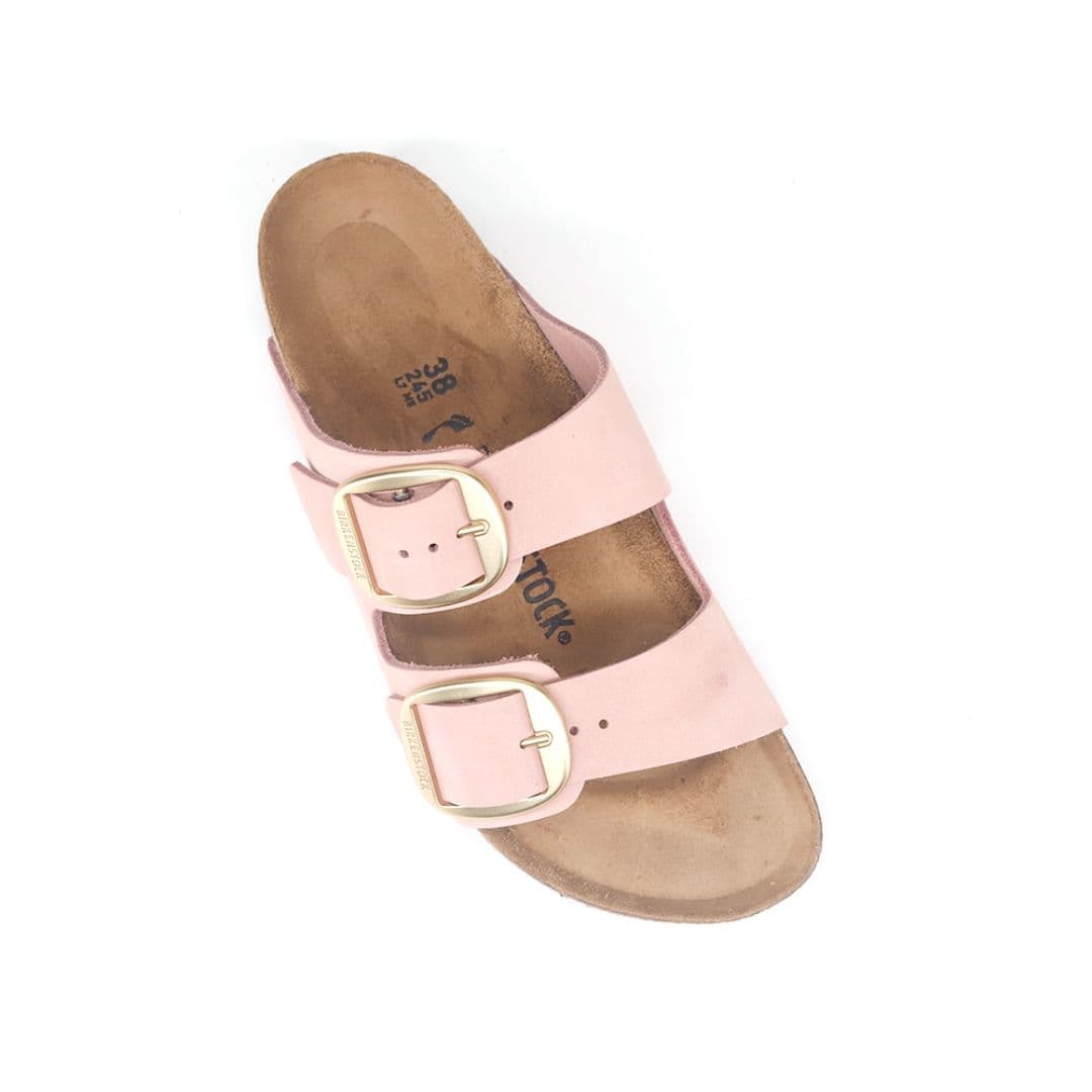 Le Birkenstock Arizona Big Buckle sono l’evoluzione di un vero classico che entusiasma il mondo della moda con il suo design essenziale. Presenta due fibbie ad ardiglione grandi ed eleganti, un bel particolare che spicca su questi sandali molto sobri. Il sottopiede del plantare semi-exquisit è rivestito in morbida pelle liscia in colore coordinato alla scarpa. La tomaia è composta da pelle rosa particolarmente spessa e oliata, lavorata a cuciture aperte.