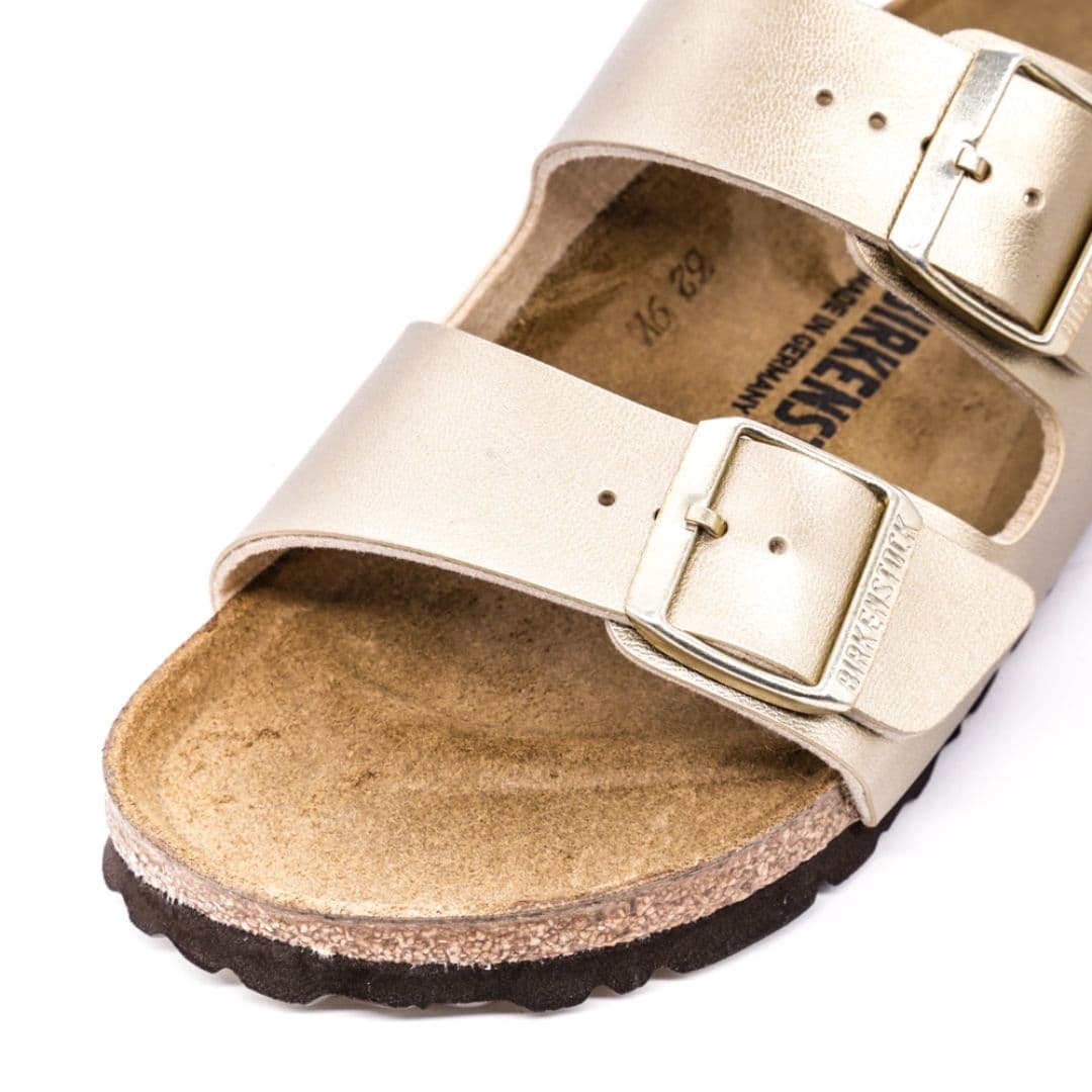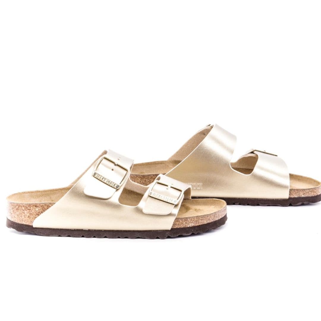 Le Birkenstock Arizona Bs sono un vero classico del brand tedesco leader mondiale, che conquista uomini e donne da sempre. La tomaia color oro, è realizzata in materiale Birko-Flor dermoaffine e resistente, è regolabile individualmente con due cinturini. I plantari anatomici le rendono una scarpa cult dal confort unico.