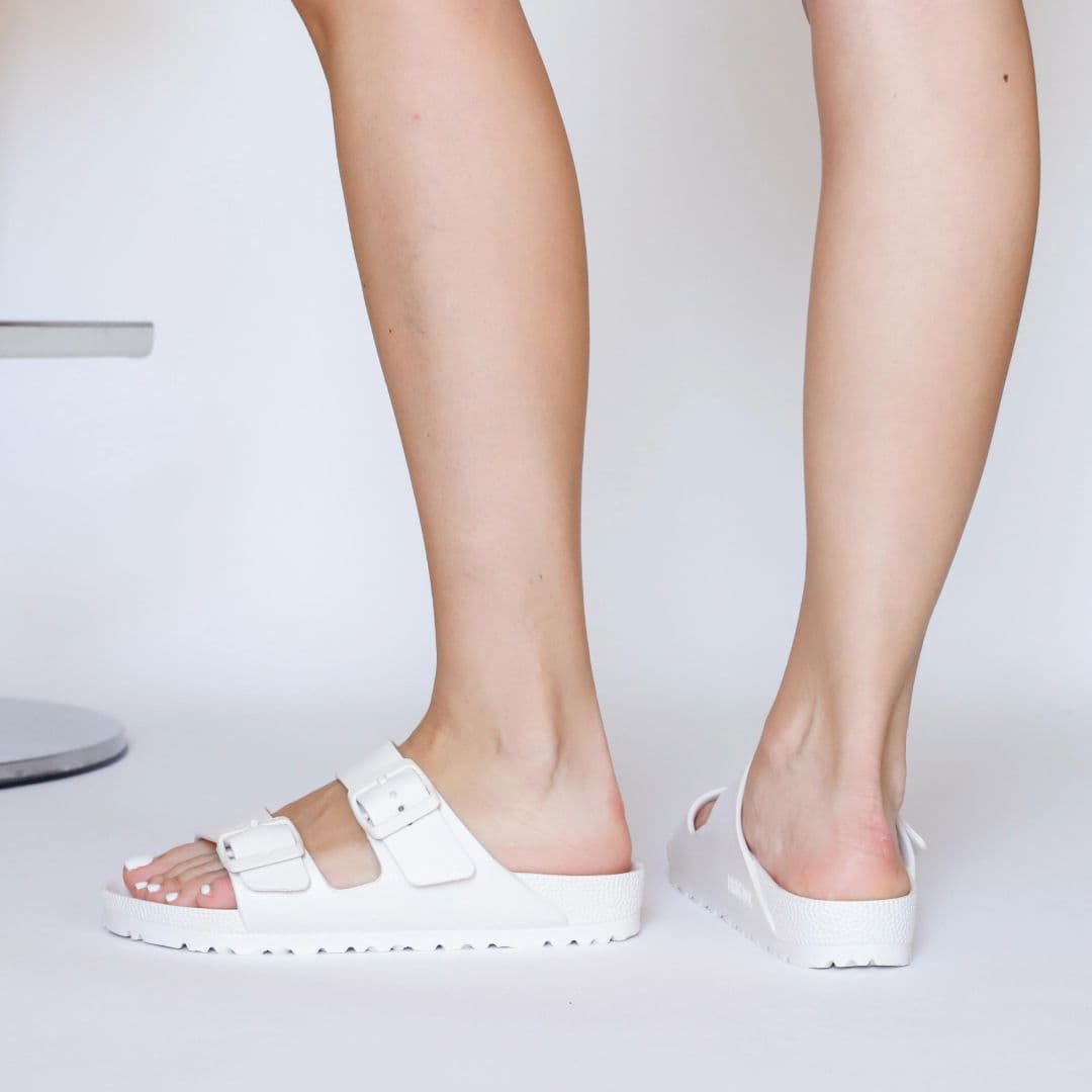 Le Birkenstock Arizona Eva sono l’evoluzione di un vero classico del brand tedesco leader mondiale, che conquista uomini e donne da sempre. Il materiale plastico EVA è di alta qualità, non ha odore o sostanze inquinanti, è molto leggero, altamente elastico, impermeabile e dermoaffine. La tomaia beige è regolabile individualmente con due cinturini ed il plantare anatomico le rendono una scarpa cult dal confort unico.