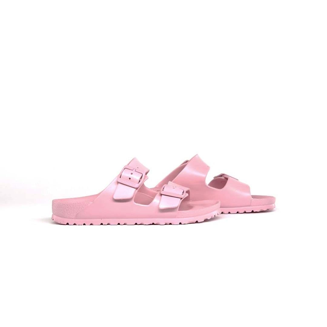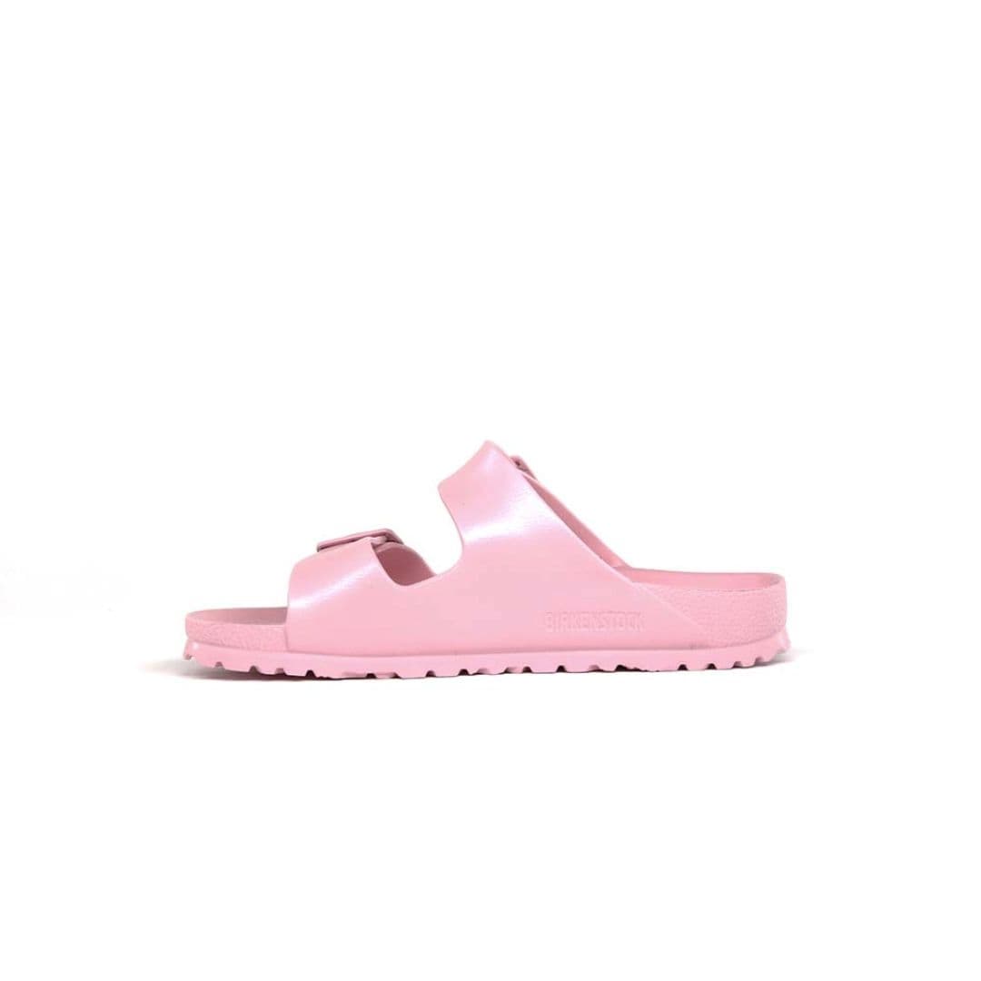 Le Birkenstock Arizona Eva sono l’evoluzione di un vero classico del brand tedesco leader mondiale, che conquista uomini e donne da sempre. Il materiale plastico EVA è di alta qualità, non ha odore o sostanze inquinanti, è molto leggero, altamente elastico, articolo impermeabile, dermoaffine. La tomaia rosa è regolabile individualmente con due cinturini ed il plantare anatomico le rendono una scarpa cult dal confort unico.