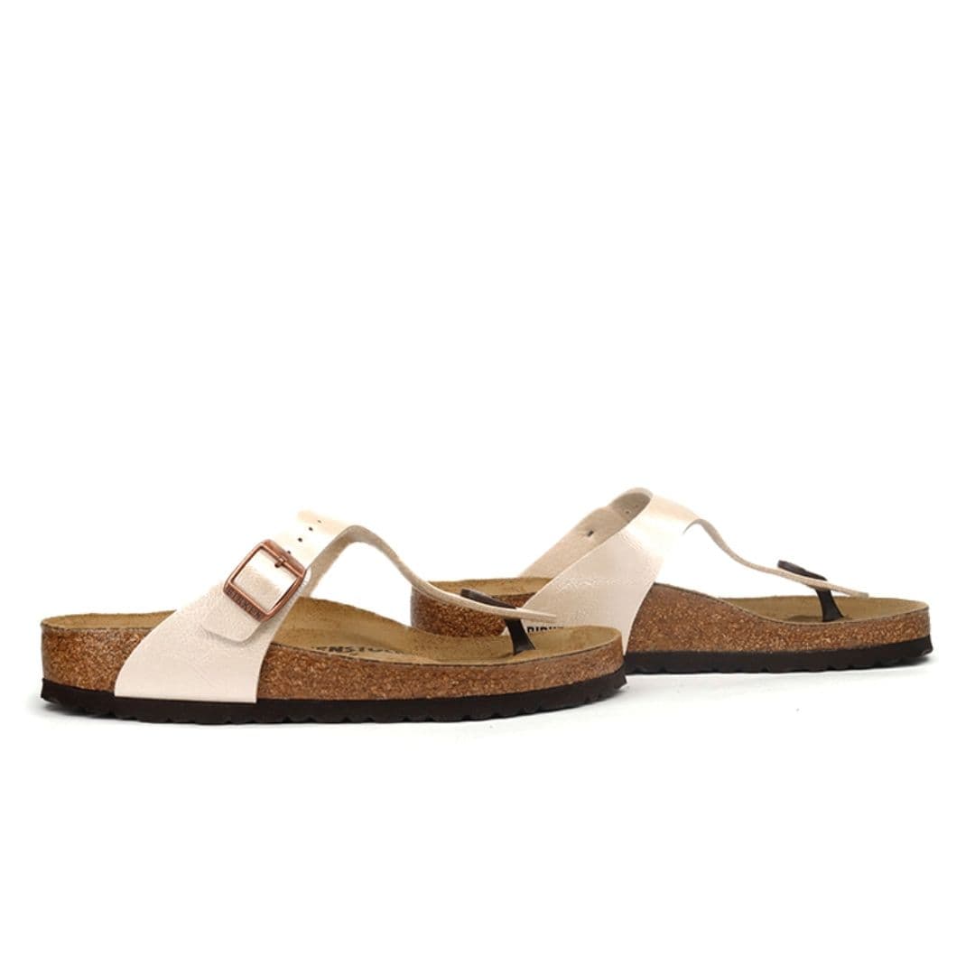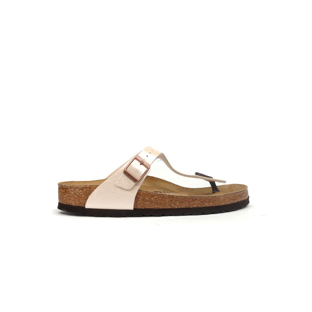 Le Birkenstock Gizeh Bs sono un vero classico del brand tedesco leader mondiale, che conquista uomini e donne da sempre. L’infradito color perla, è realizzato in materiale Birko-Flor dermoaffine e resistente, regolabile individualmente con divaricatore. I plantari anatomici le rendono una scarpa cult dal confort unico.