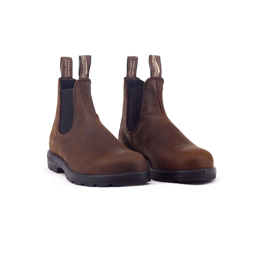 I BLUNDSTONE 1609 sono gli stivaletti beatles dal gusto country fashion. Sono realizzati in nabuk marrone con elastico marrone completamente impermeabile in caso di pioggia. I classici stili Blundstone “pull on” sono amati per il loro design senza tempo e oggi sono simbolo di comfort e versatilità. Sono i chelsea boot ideali per affrontare l’inverno con tutti i vostri outfit.