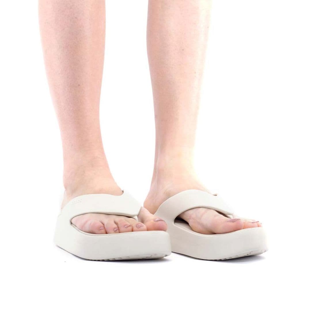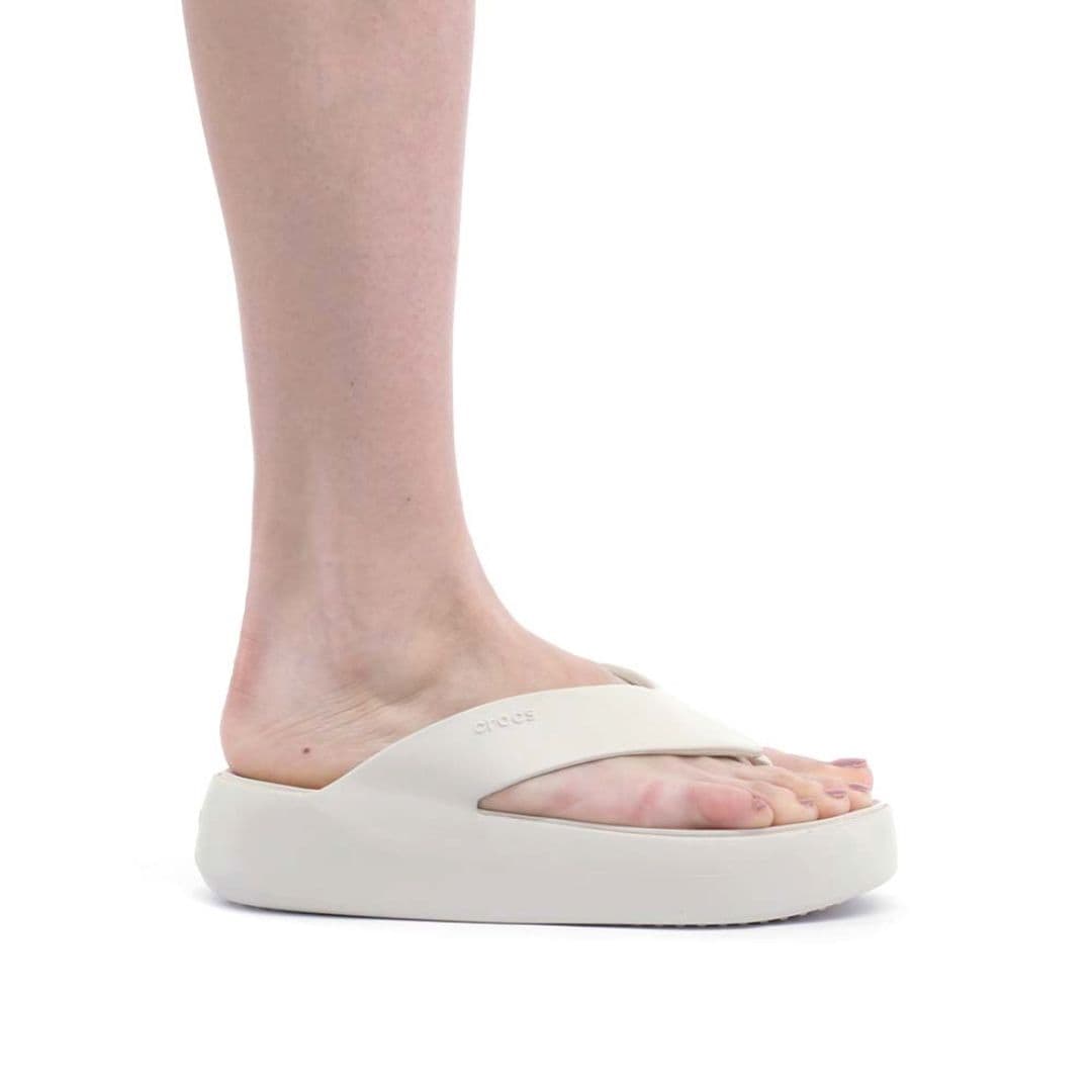 Le Crocs Getaway Platform Flip sono le nuove ciabatte infradito leggerissime, con una leggera zeppa dallo stile semplice e molto versatile. Il plantare beige è dotato della tecnologia in schiuma Free Feel™ straordinariamente confortevole. Con la linea Getaway ti sembrerà di galleggiare e potrai muoverti senza più limiti.