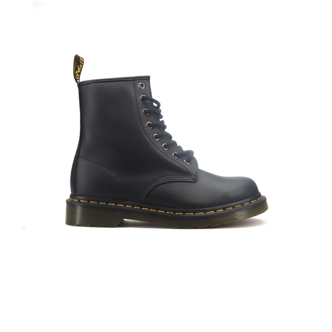 Le Dr. Martens 1460 sono sicuramente gli anfibi più famosi del brand inglese, un vero e proprio mito streetwear con uno stile unico che non conosce tempo. Sono realizzate in pelle nera morbida con 8 fori, montata sulla suola brevettata con cuscinetto d’aria e con l’inconfondibile cucitura gialla come la fettuccia con marchio AirWair sul tallone.
