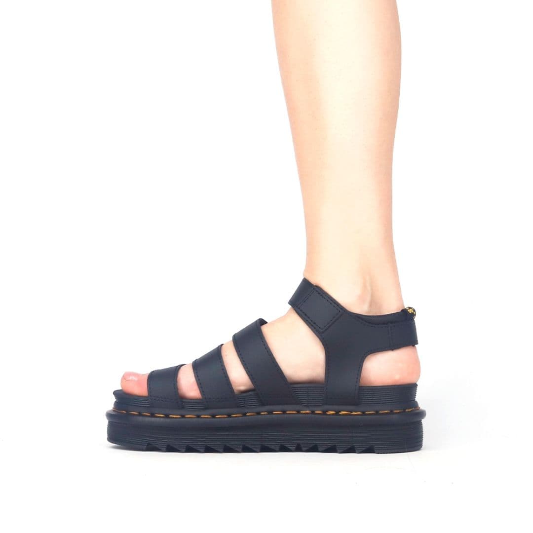 Le Dr. Martens Blaire sono l’evoluzione dei sandali gladiatore dello storico brand inglese. Realizzate in pelle nera con una leggera zeppa per un’altezza extra e l’inconfondibile cucitura gialla Goodyear. Il cinturino è imbottito per un maggior confort e uno stile unico.
