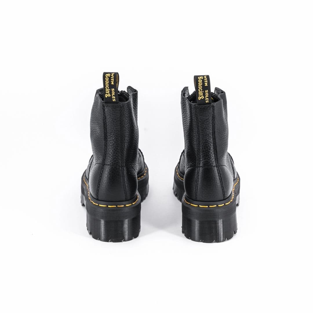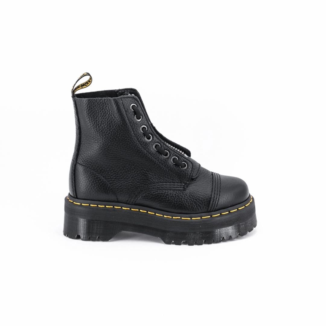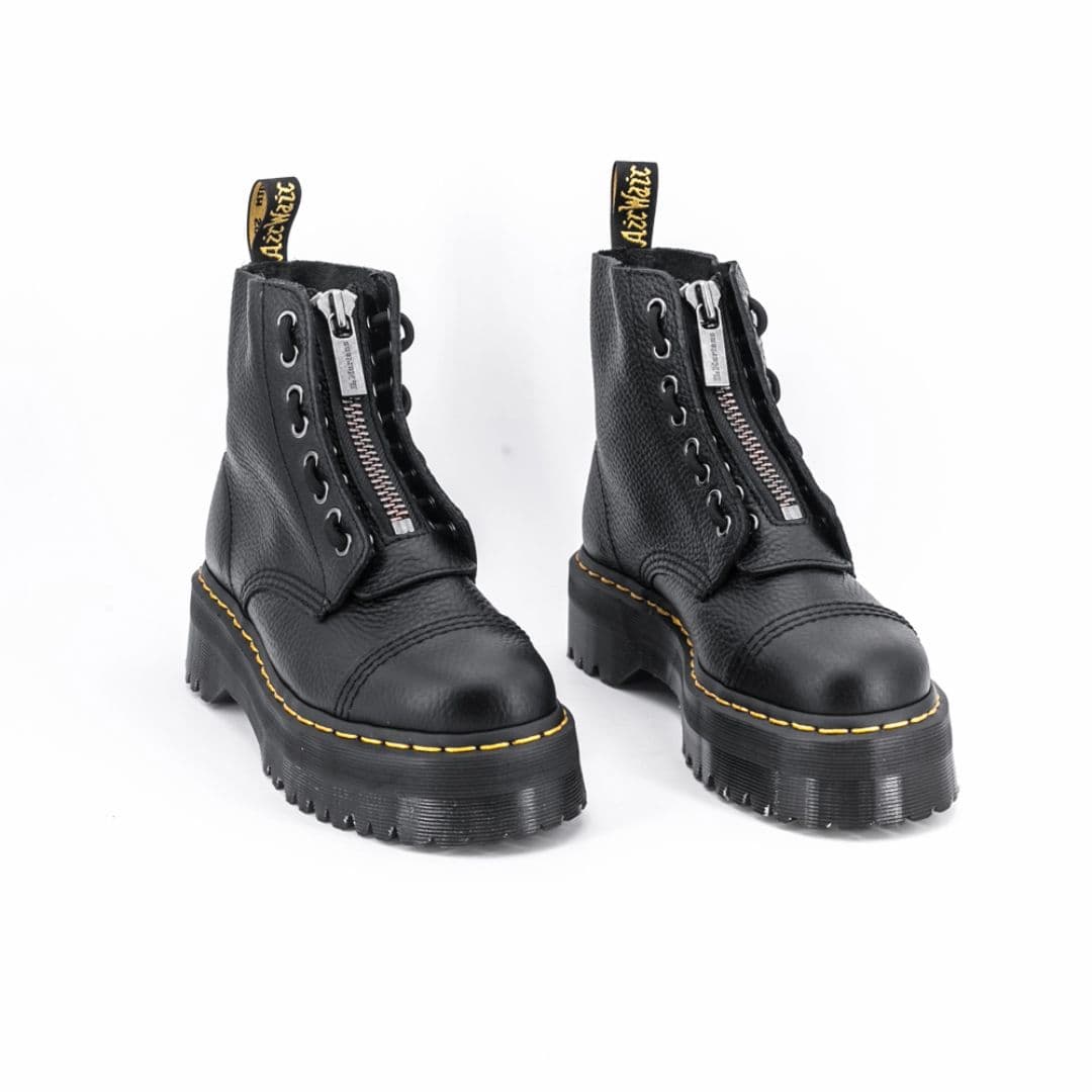 Le Dr. Martens Sinclair sono la rivisitazione in chiave underground dei più conosciuti Docs 1460. Sono realizzate in pelle nera con 8 fori e la cucitura gialla lungo la suola, oltre all’inconfondibile fettuccia con marchio AirWair sul tallone. Si differenziano per il platform con cuscinetto d’aria e la cerniera frontale che si sostituisce nell’utilizzo ai lacci.