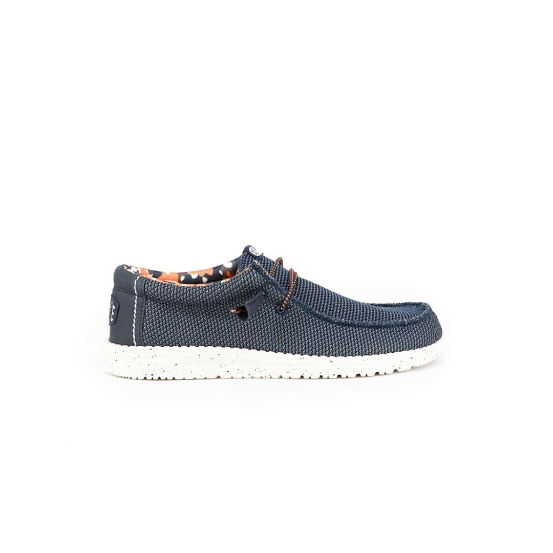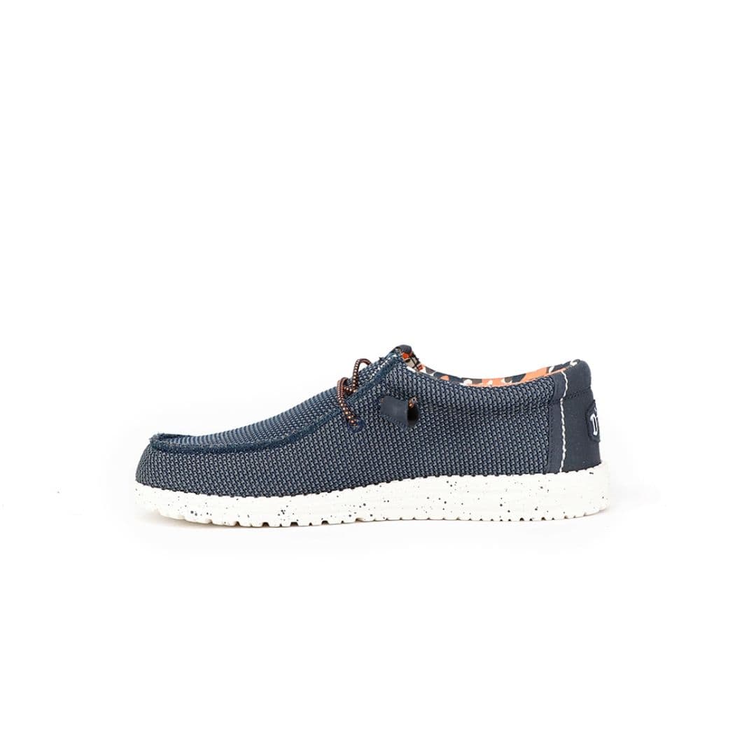 I mocassini HEY DUDE Wally Sox Stitch racchiudono il massimo comfort in un unico prodotto. La tomaia è realizzata in tessuto blu, con il tallone beige rivestito in misto tela. Il plantare in morbido sughero contribuisce ad alleggerire il passo per un comodità e una leggerezza unica.