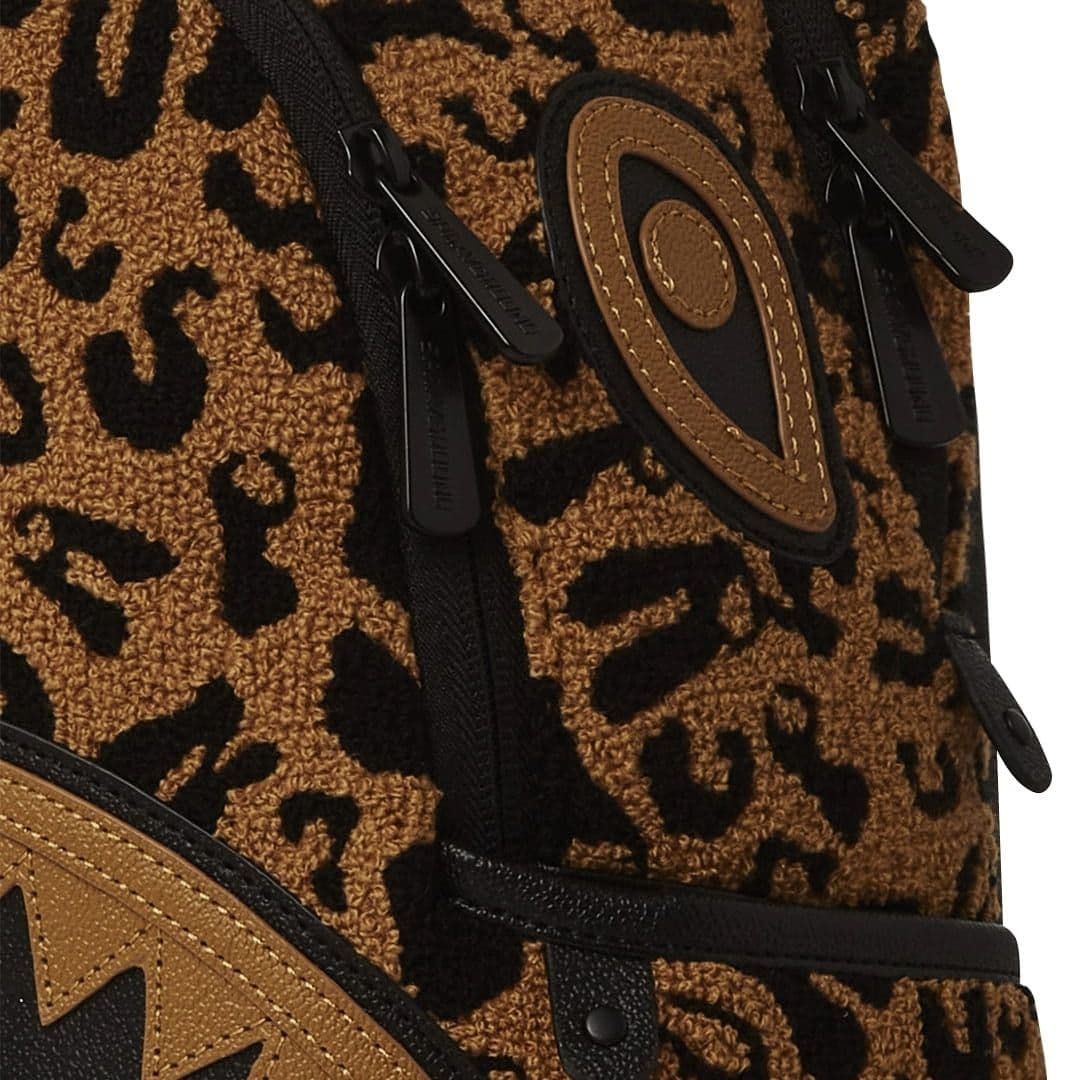 Lo zainetto Sprayground presenta il suo iconico motivo con i denti di squalo, realizzato su tessuto effetto leopardato stilizzato. E’ composto da due scomparti principali con zip, tasche laterali e una tasca nascosta. All’interno troviamo una tasca organizer con cerniera, due tasche a bustina e una clip portachiavi Le cinghie regolabili permettono di adattare lo zainetto, assicurando un comfort unico. Nota: le misure dell’articolo sono 25 x 13 x 30 cm.