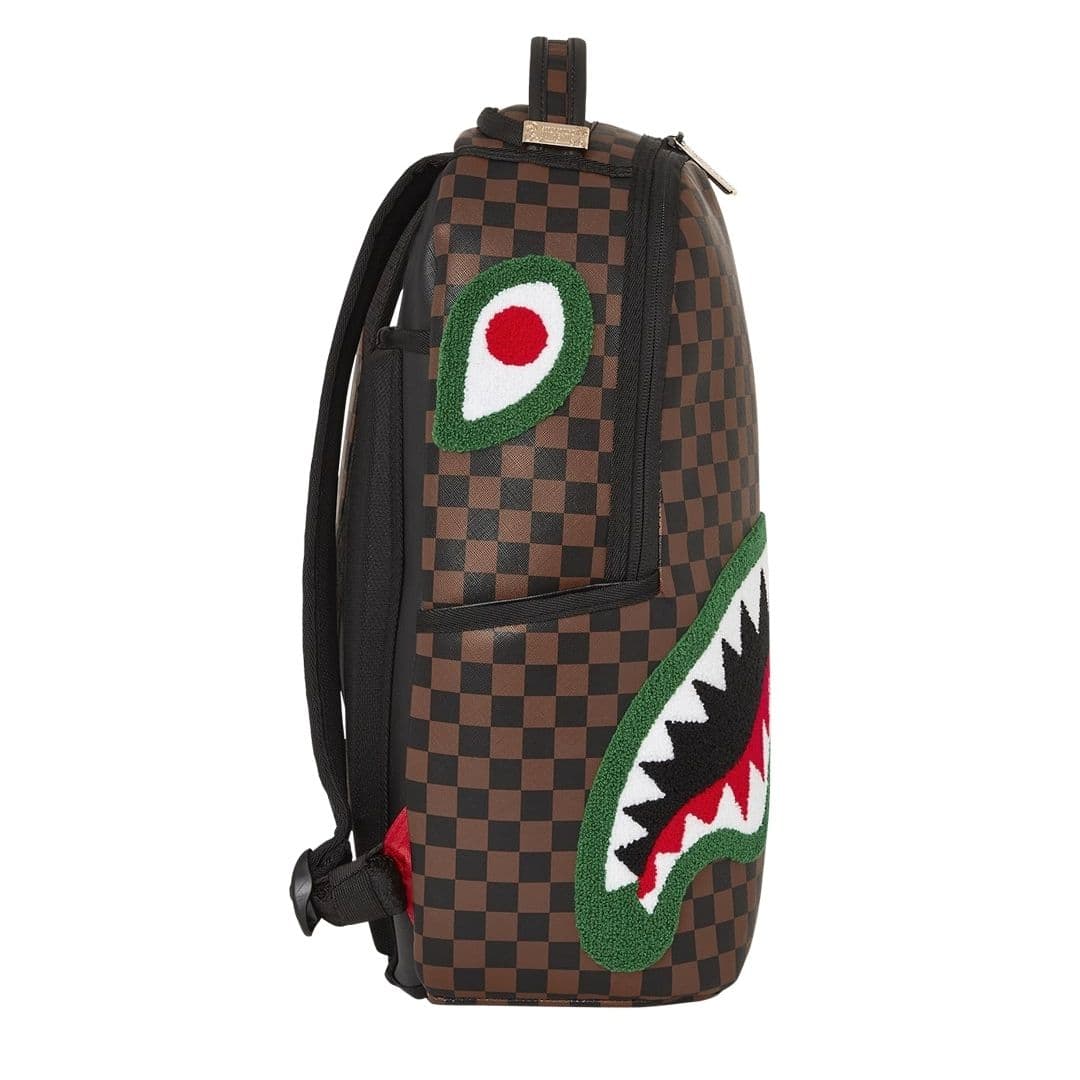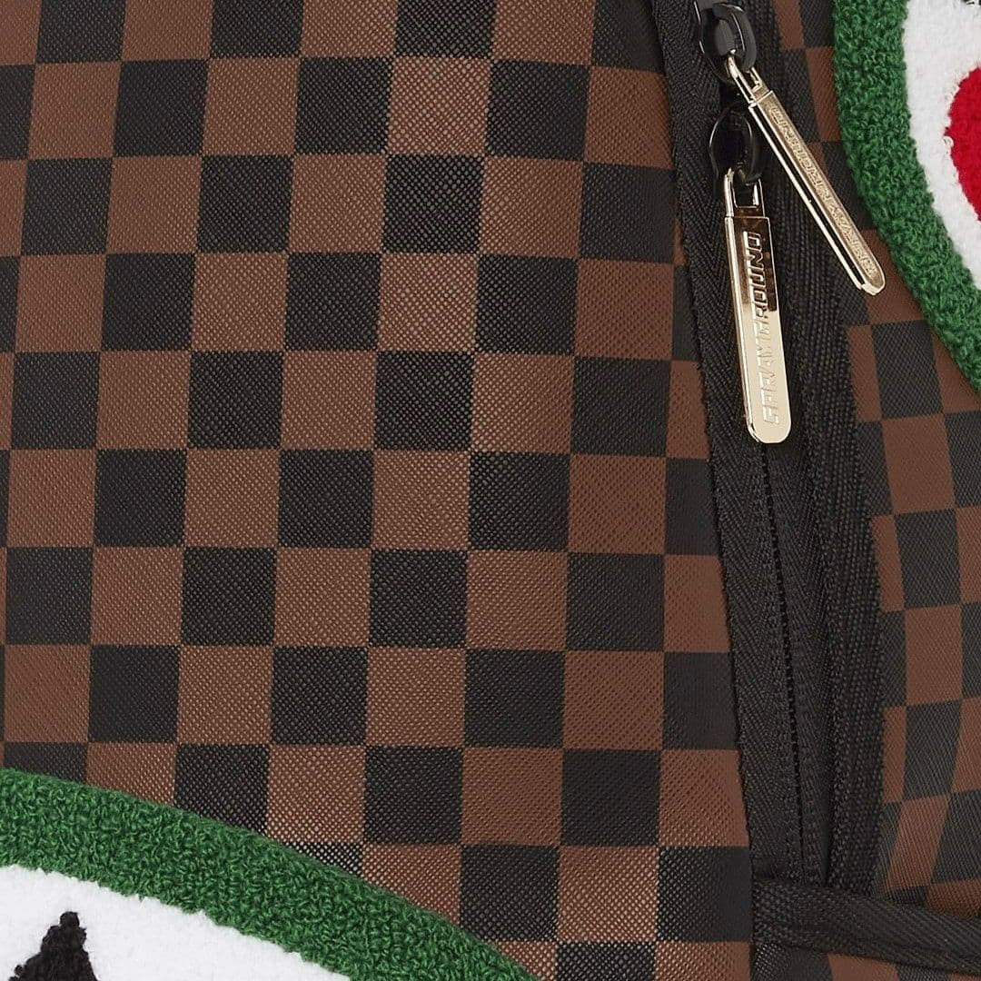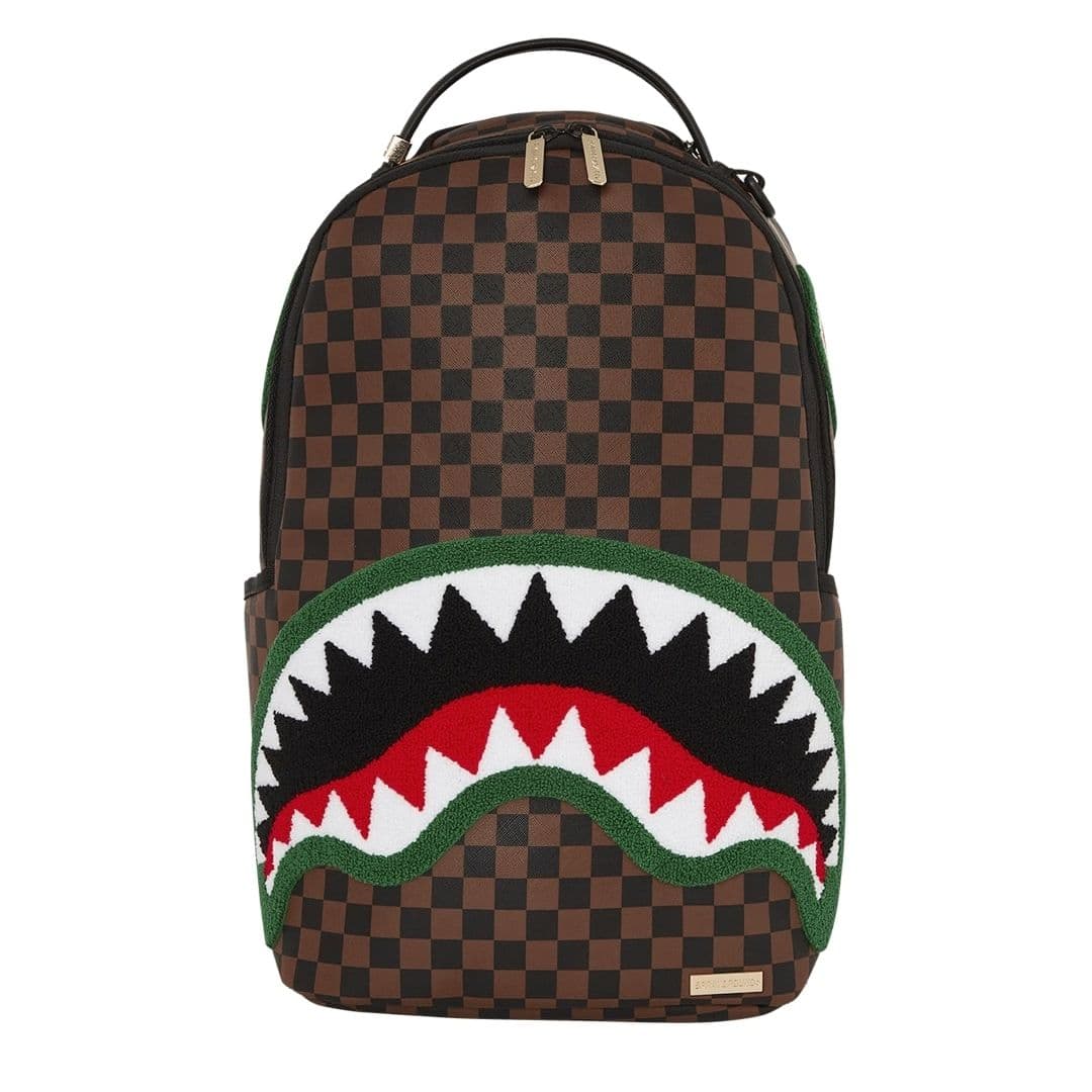 Lo zainetto Sprayground presenta il suo iconico motivo con i denti di squalo, realizzato su ecopelle checkerboard nero e marrone, impermeabile. Lo scomparto principale presenta uno tasca per laptop separato, mentre la parte posteriore nasconde un’imbottitura ergonomica in rete. Le cerniere e le cinghie regolabili permettono il massimo del confort. Nota: le misure dell’articolo sono 45,7 x 15,2 x 29,2 cm.