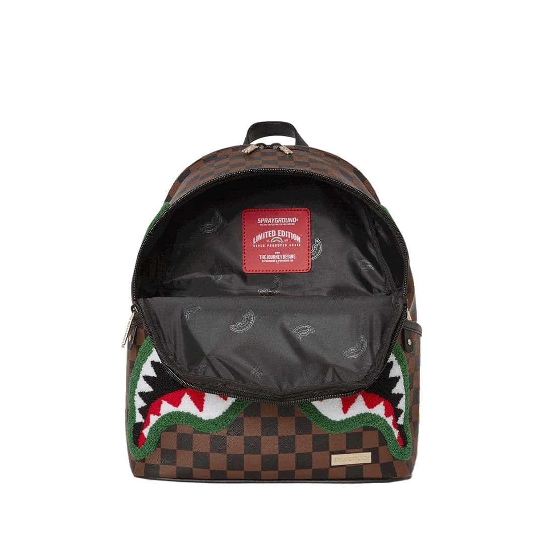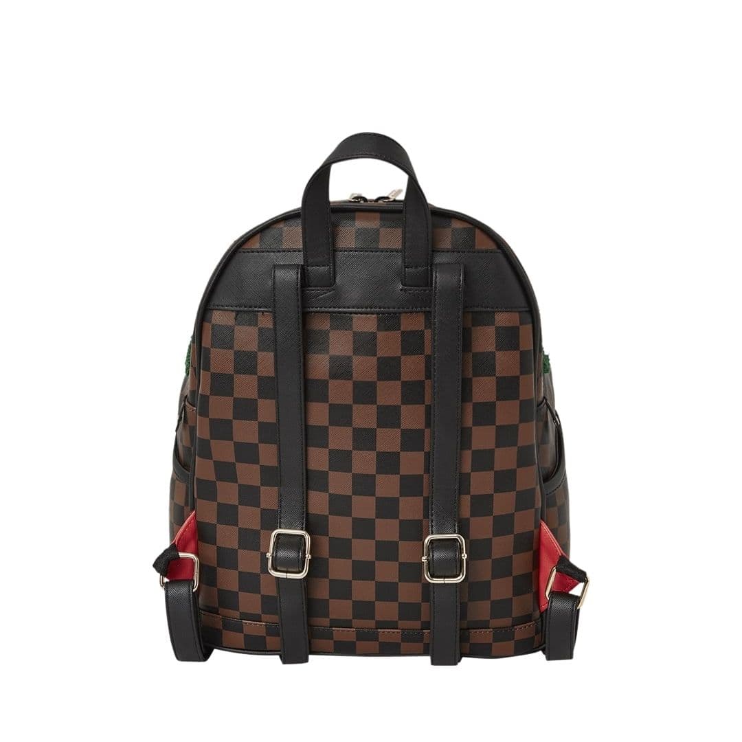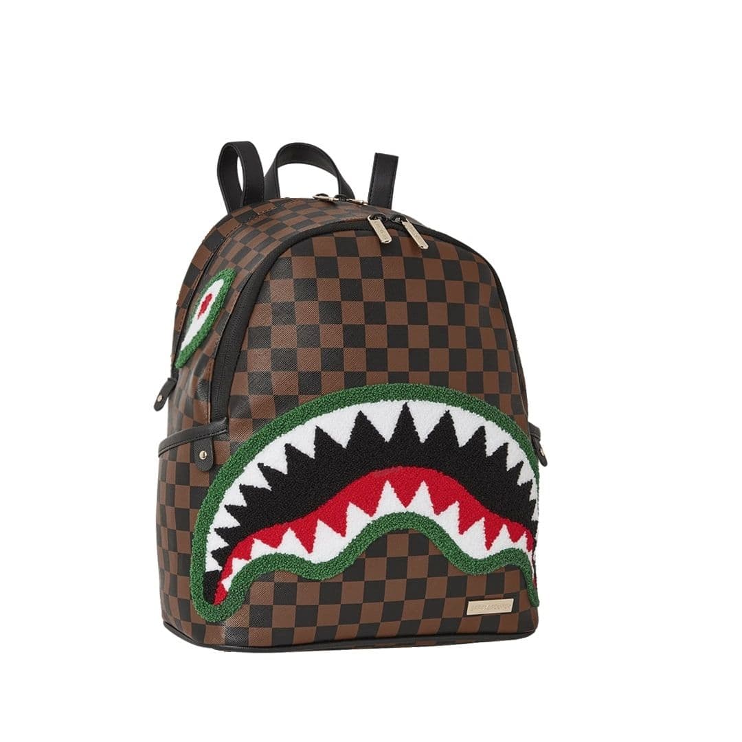 Lo zainetto Sprayground presenta il suo iconico motivo con i denti di squalo, realizzato su ecopelle checkerboard nero e marrone, impermeabile. E’ composto da due scomparti principali con zip, tasche laterali e una tasca nascosta. All’interno troviamo una tasca organizer con cerniera, due tasche a bustina e una clip portachiavi Le cinghie regolabili permettono di adattare lo zainetto, assicurando un comfort unico. Nota: le misure dell’articolo sono 25 x 13 x 30 cm.