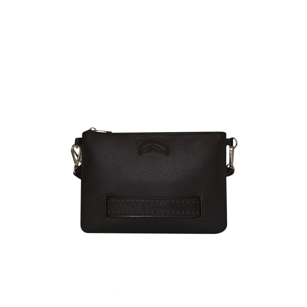 La pochette Sprayground è realizzata su ecopelle martellata nera impermeabile, con una piccola patch con scritte in stile newyorkese. E’ utilizzabile con il cinturino da polso rimovibile, o con una comoda maniglia sul pannello frontale. All’interno è presente una tasca interna con cerniera. Nota: le misure dell’articolo sono 18 x 25 x 0,6 cm.