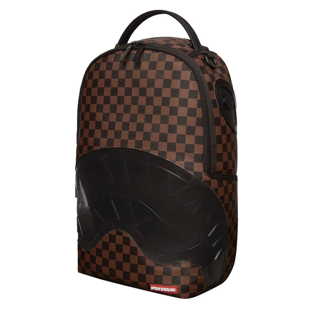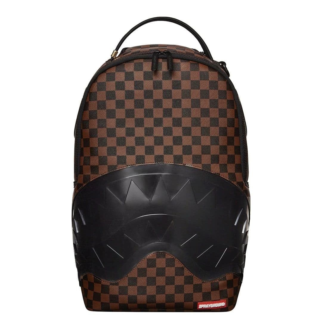 Lo zaino Sprayground presenta il suo iconico motivo con i denti di squalo in pvc trasparente su un ecopelle checkerboard nero e marrone, impermeabile. Lo scomparto principale presenta uno tasca per laptop separato, mentre la parte posteriore nasconde un’imbottitura ergonomica in rete. Le cerniere e le cinghie regolabili permettono il massimo del confort. Nota: le misure dell’articolo sono 45,7 x 15,2 x 29,2 cm.
