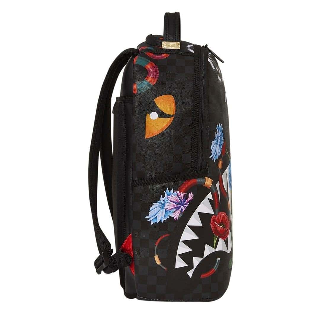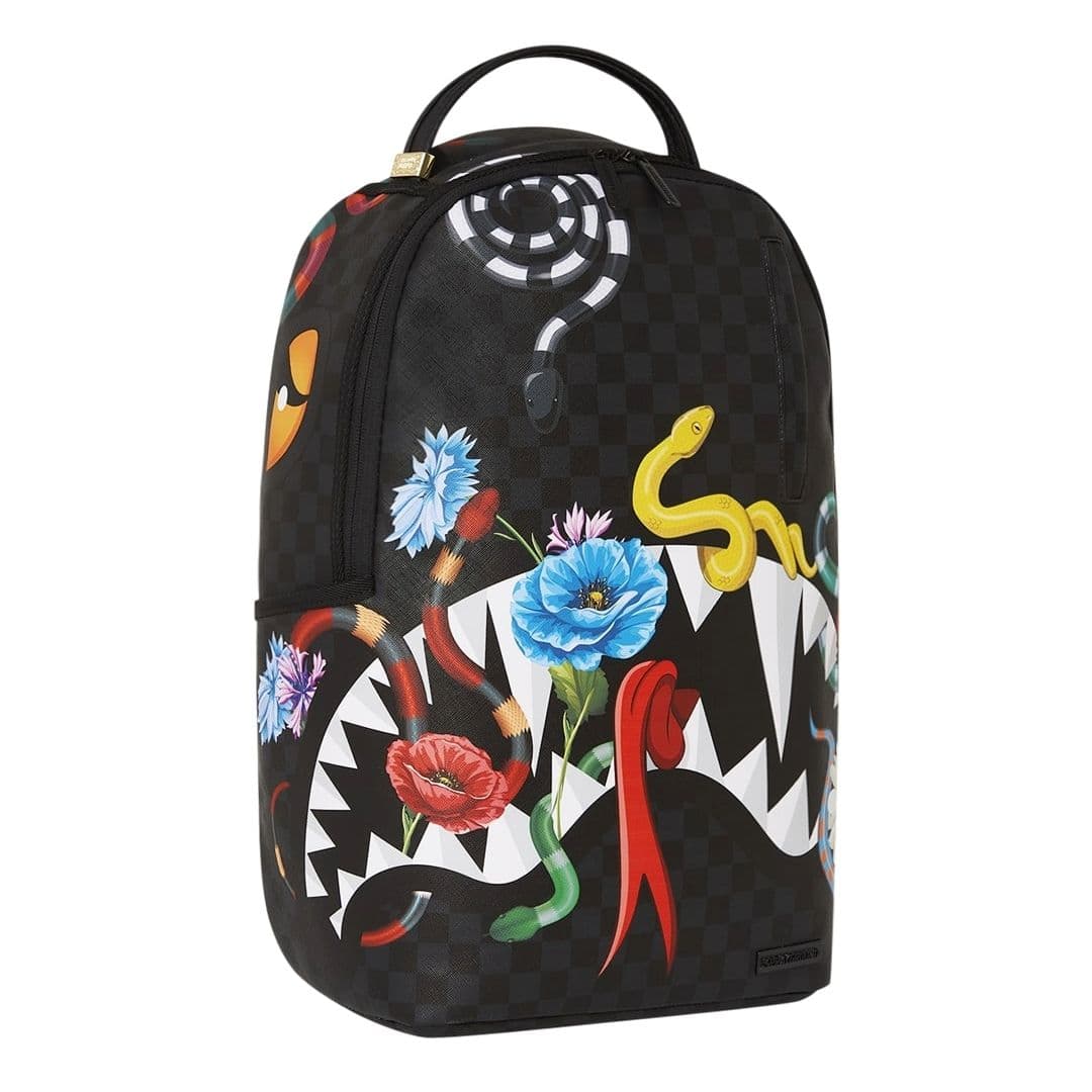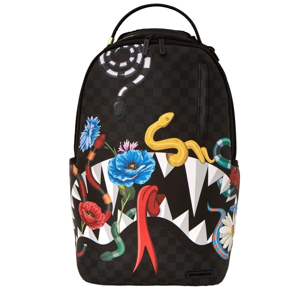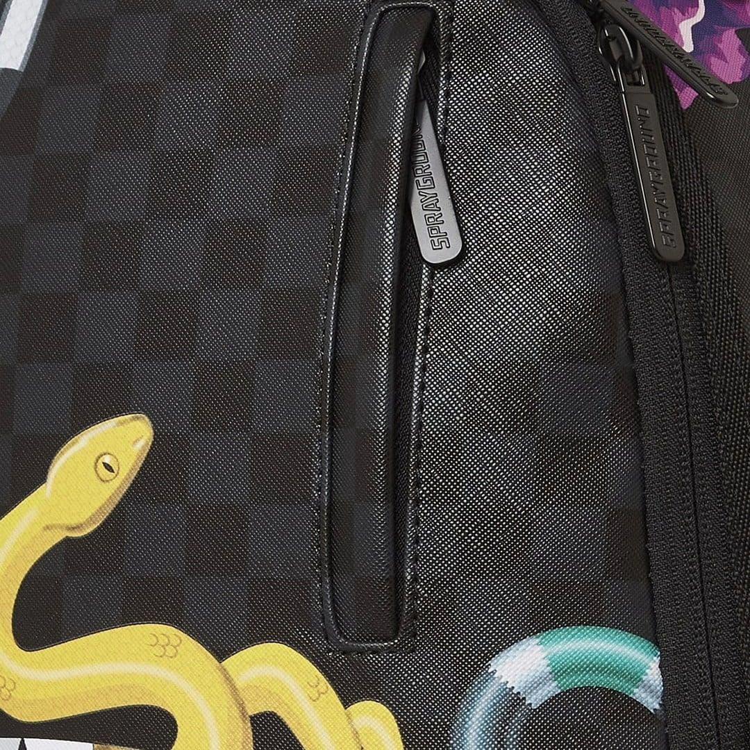 Lo zaino Sprayground presenta il suo iconico motivo con i denti di squalo su un tessuto con inserti checkerboard con serpenti multicolor. Lo scomparto principale presenta uno tasca per laptop separato, mentre la parte posteriore nasconde un’imbottitura ergonomica in rete. Le cerniere e le cinghie regolabili permettono il massimo del confort. Nota: le misure dell’articolo sono 45,7 x 15,2 x 29,2 cm.