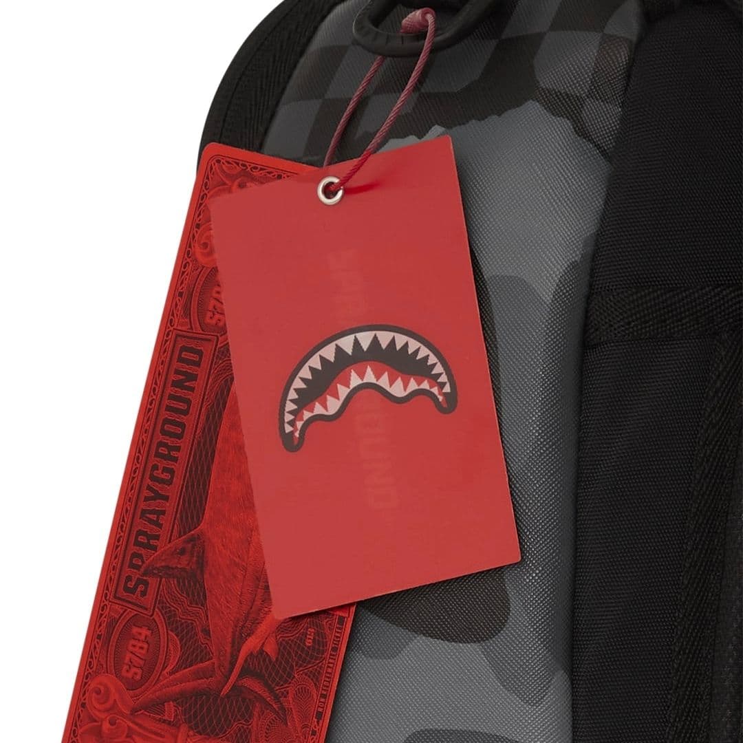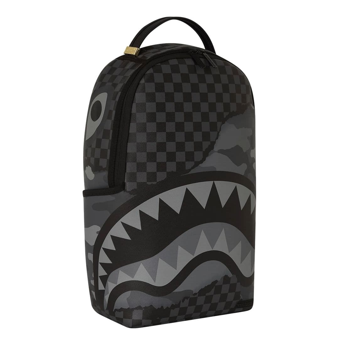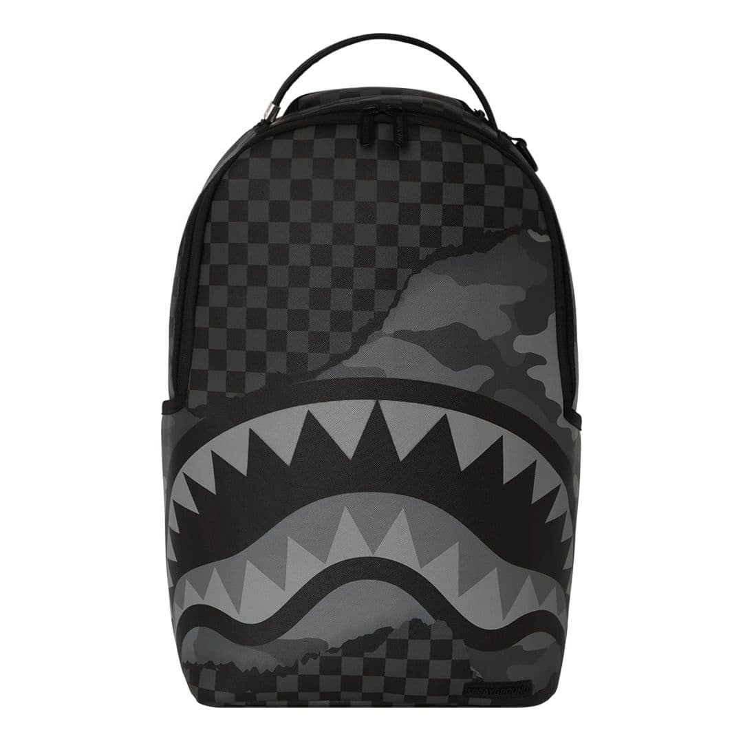 Lo zaino Sprayground presenta il suo iconico motivo con i denti di squalo su un tessuto checkerboard nero e grigio con inserti camouflage. Lo scomparto principale presenta uno tasca per laptop separato, mentre la parte posteriore nasconde un’imbottitura ergonomica in rete. Le cerniere e le cinghie regolabili permettono il massimo del confort. Nota: le misure dell’articolo sono 45,7 x 15,2 x 29,2 cm.