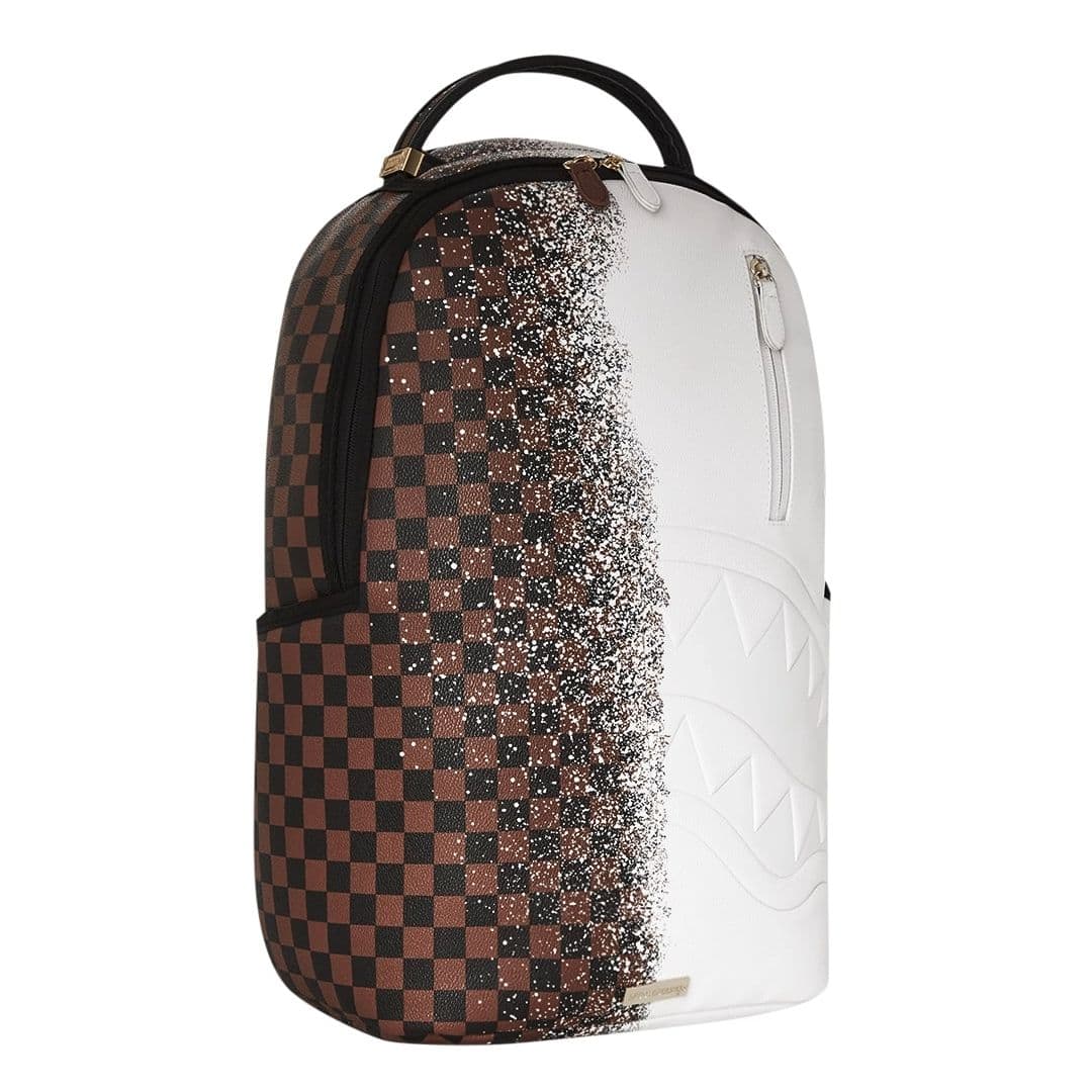 Lo zaino Sprayground presenta il suo iconico motivo in ecopelle checkerboard nero e marrone con l’effetto vernice spray bianco in sovrapposizione, impermeabile. Lo scomparto principale presenta uno tasca per laptop separato, mentre la parte posteriore nasconde un’imbottitura ergonomica in rete. Le cerniere e le cinghie regolabili permettono il massimo del confort. Nota: le misure dell’articolo sono 45,7 x 15,2 x 29,2 cm.