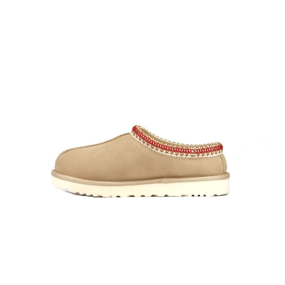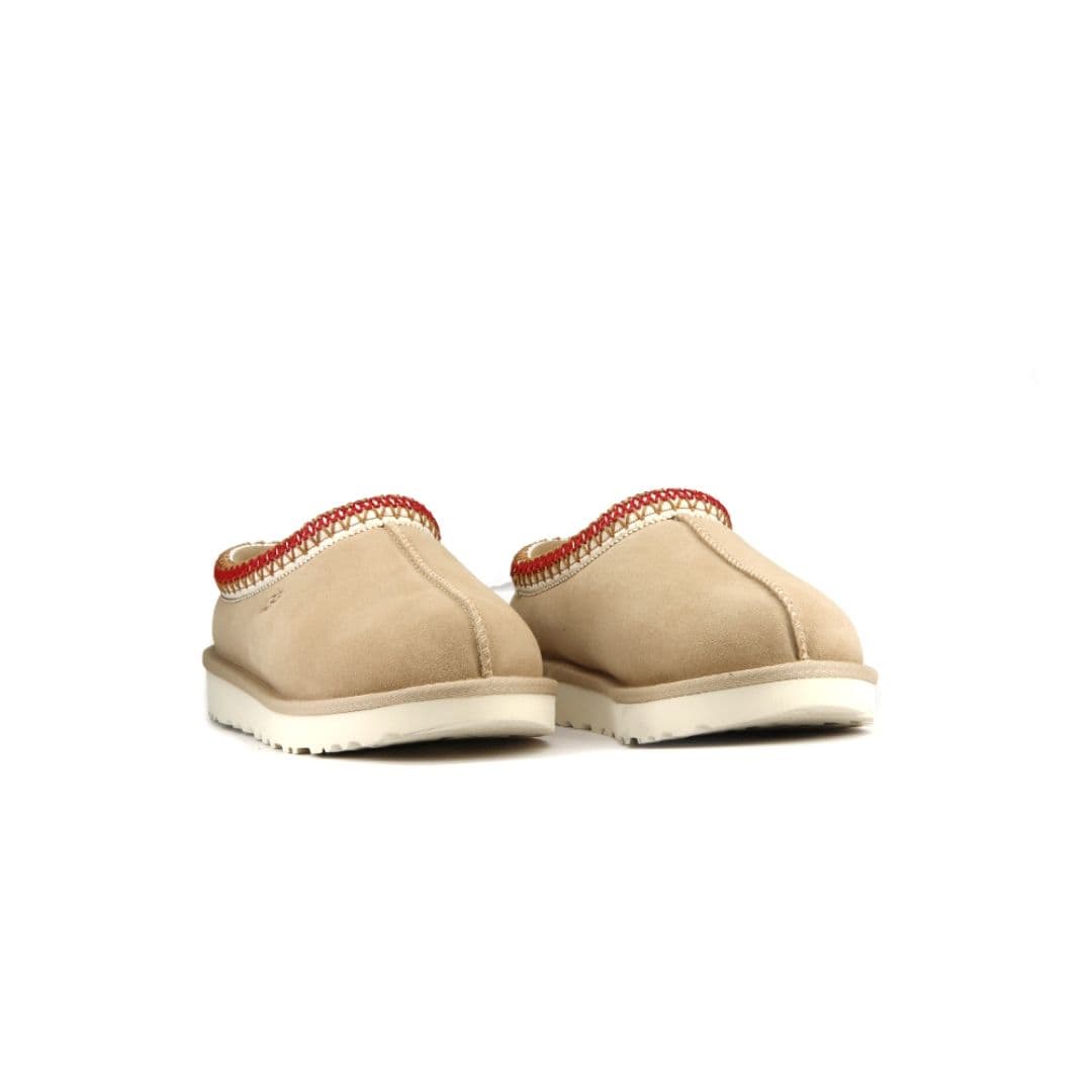 Le slippers UGG Tasman sono l’ideale per tutte le occasioni, avendo la stessa suola leggera e confortevole dell’iconico stivaletto Classic Mini, che permette di indossarle sia in casa sia fuori. Queste pratiche slip on sono foderate in morbida lana naturale e sono realizzate in soffice pelle scamosciata beige con una treccia ricamata.